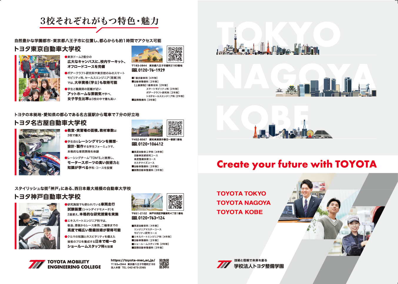 2024年度までは、3校(トヨタ東京自動車大学校/トヨタ名古屋自動車大学校/トヨタ神戸自動車大学校)独立運営であった為、一法人化に伴い一からの制作となりました。