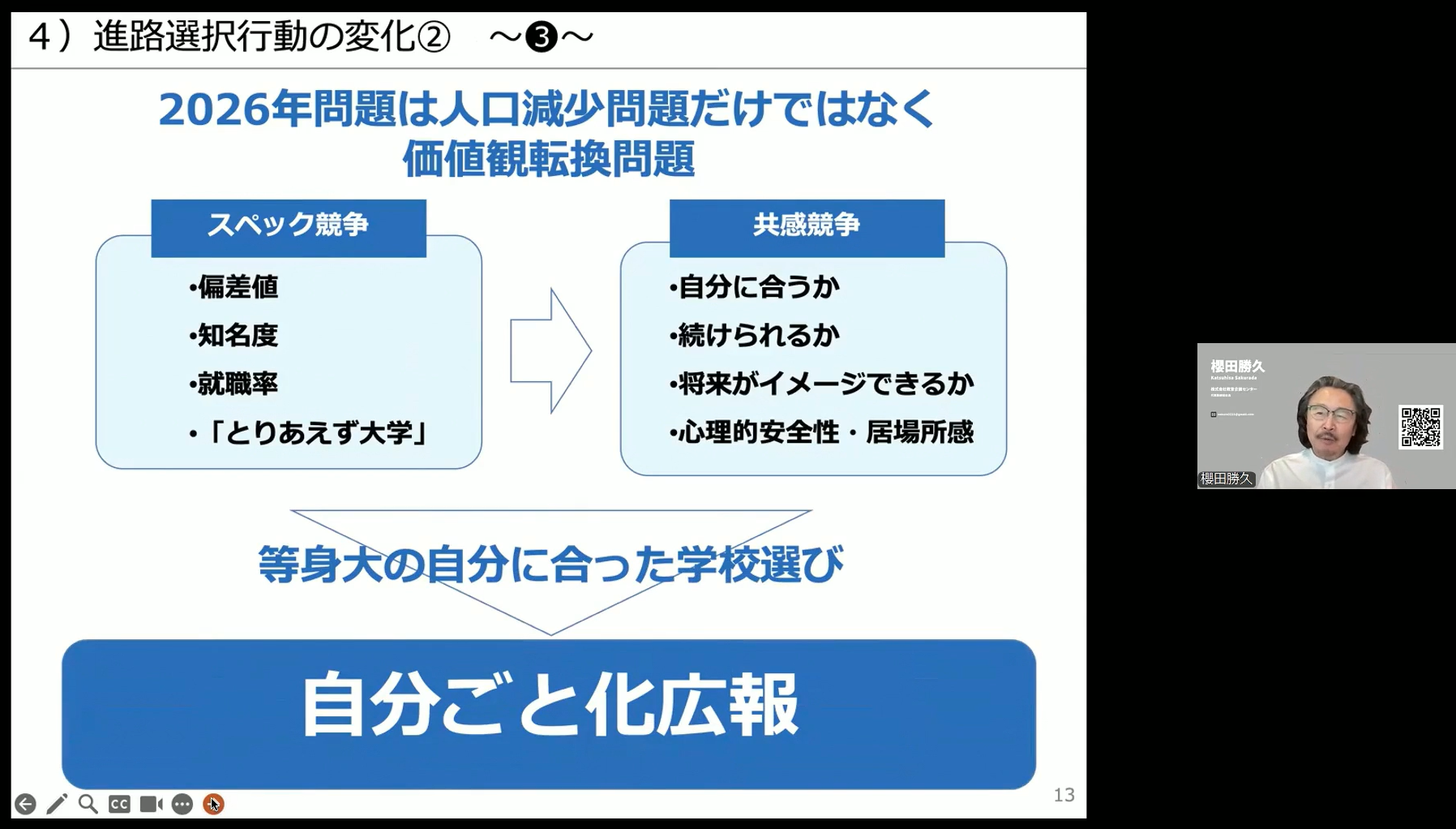 株式会社教育企画センター代表取締役:櫻田氏から、2026年押さえておきたい学生募集の現状分析と、「高校教育の構造変化」や「進路選択行動の変化」に伴う今後の広報活動の傾向と対策を解説いただきました。
